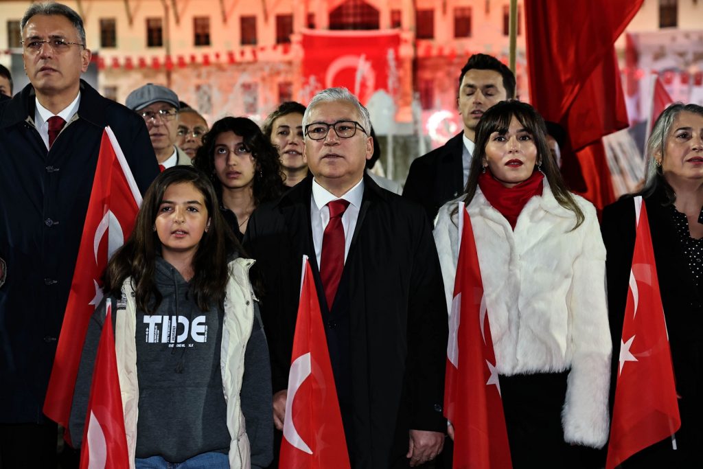 Millî Mücadele’nin karargâhı olan Sivas’ta, halkımızın yoğun katılımıyla gerçekleşen yürüyüş, tarihi valilik binası önünde sona erdi. Cumhuriyet Meydanı’nı dolduran binlerce Sivaslı, gökyüzünü aydınlatan havai fişekler eşliğinde bu anlamlı günü coşku, gurur ve birlik içinde kutladı.
