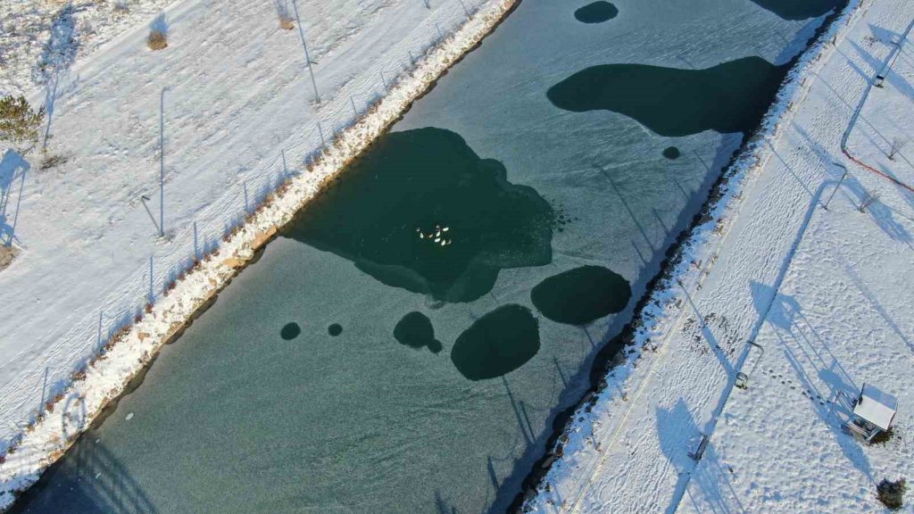 Sivas, Sibirya soğuklarının etkisini sert bir şekilde hissetmeye devam ediyor. Özellikle Cumhuriyet Üniversitesi’ndeki yapay göletin büyük bir kısmı buzla kaplandı. Gölette yaşayan ördekler, suyun donmayan az sayıdaki kısımlarında yüzmeye çalışarak hayatta kalmaya çalışıyor.