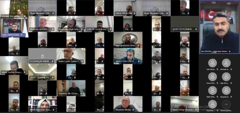 Milli Eğitim Müdürü Fatih Erdoğan başkanlığında video konferans yöntemiyle yapılan toplantıya, ilçe milli eğitim müdürleri ve okul müdürleri katılım gösterdi.