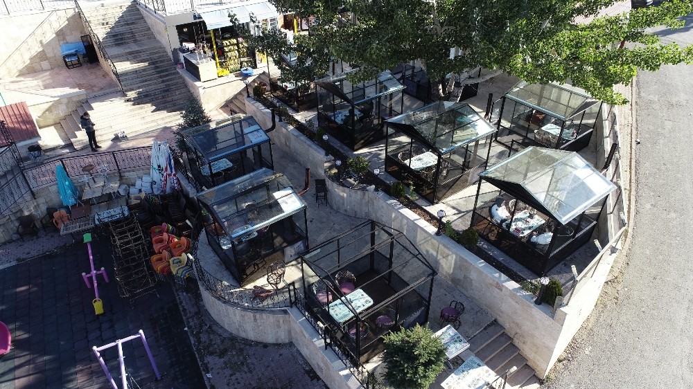 Sivas merkezde girişimci bir kafe işletmecisinin 100 bin lira harcayarak korona virüse karşı yaptırdığı cam kabinler büyük ilgi görüyor.
