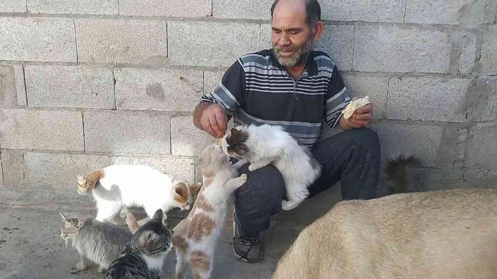 Sivas’ın Gemerek ilçesinde yaşayan ve sokak hayvanlarına bakan Mustafa Karakaş bu davranışı ile sokak hayvanlarının babası olarak anılıyor.