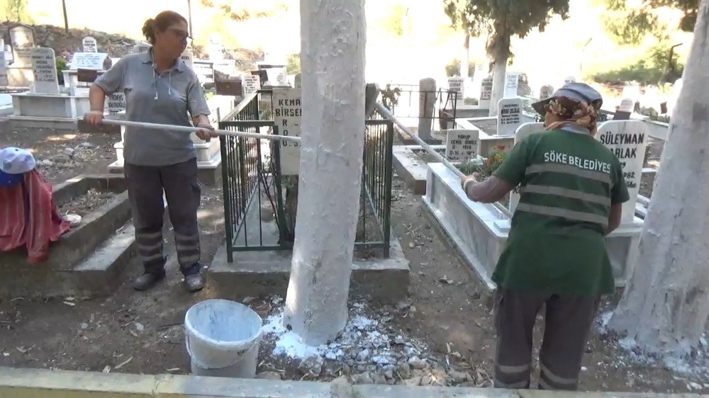 Söke ilçe merkezinde asri mezarlık başta olmak üzere Granta Mezarlığı’nda yapılan çalışmalarda kabirlerin çevre temizliği ve kireçlenmesinin yanı sıra mezarlık içi yollarda kaldırımların boyanması, oturma yerlerinin bakım ve onarımı, ağaçların kireçlenmesi gibi çalışmalar da yapılıyor. İlçe merkezi dışında çevre mahallelerde bulunan mezarlıklarda da temizlik çalışması yapıldığı belirtildi.