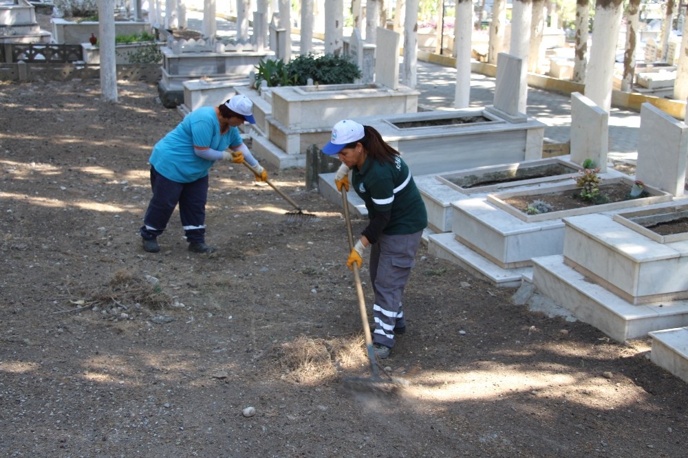 Söke Belediyesi tarafından Kurban Bayramı öncesinde mezarlıklarda kapsamlı temizlik çalışması yapılıyor.