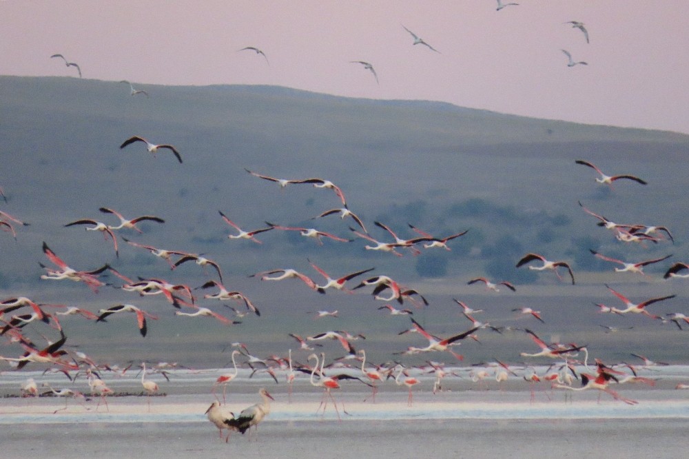 Su seviyesinin mevsimsel yağışların etkisini kaybetmesiyle birlikte azaldığı Seyfe Gölü Kuş Cennetinde yılın son bölgesel kuş hareketliliği gözlendi.