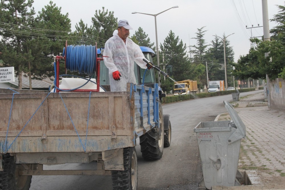 Şuhut’ta çöp bidonları dezenfekte ediliyor