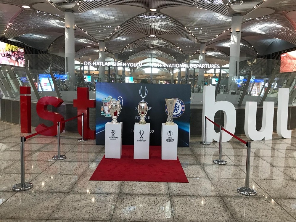 İstanbul’da 14 Ağustos’ta Liverpool ile Chelsea Süper Kupa Finalinde karşı karşıya gelecek. Büyük mücadele öncesi kazanana verilecek olan ’Süper Kupa’da İstanbul Havalimanı’na getirildi. Kupa, 13 Ağustos’a kadar İstanbul Havalimanı dış hatlar gidiş katında yolcuların gösterimine sunulacak. Süper Kupanın yanında şampiyonalar ligi kupası ve UEFA kupası da sergileniyor.