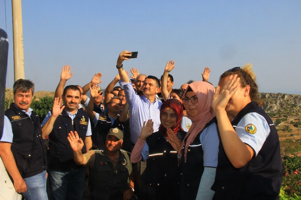 Muğla’da özellikle Dalaman ve Göcek’te yanan alanlarda Muğlalıları sonbaharda fidan dikmeye davet eden Bakan Pakdemirli, “Dalaman-Göcek yangınında da daha önce söyledim. Tüm Muğlalıları bu yangın ile alakalı ağaç dikmeye, fidan dikmeye bekliyoruz dedim. İnşallah bu sahadaki temizliklerimiz devam ediyor, bu temizlikler biter bitmez en yakın zamanda ağaç dikme faaliyeti mevsim müsaade ettiği müddetçe başlayacak. Biz bir ağaç bizim içini önemli diyoruz. Bunu diyen kim? Başta Cumhurbaşkanımız Recep Tayyip Erdoğan. 4,5 milyar fidanı toprakla buluşturmuş bir iktidarız. 2023 için bir hedefimiz var. 7 milyar fidanı toprakla buluşturmak. Yani dünyada yaşayan her bir insan için fidan dikme hedefimiz var. Bu hedef bizim için çok önemli bir ışık, Bu hedefe ulaşmak için Bakanlık olarak gece demeden, gündüz demeden gerekli gayreti gösteriyoruz” dedi.