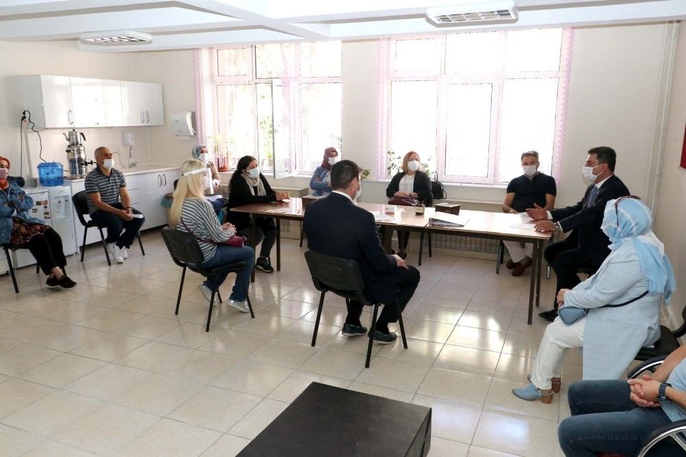 Sivas İl Milli Eğitim Müdürü Ebubekir Sıddık Savaşçı öğretmenlerle yaptığı toplantıda onların görüş ve önerilerine de kulak verdi.