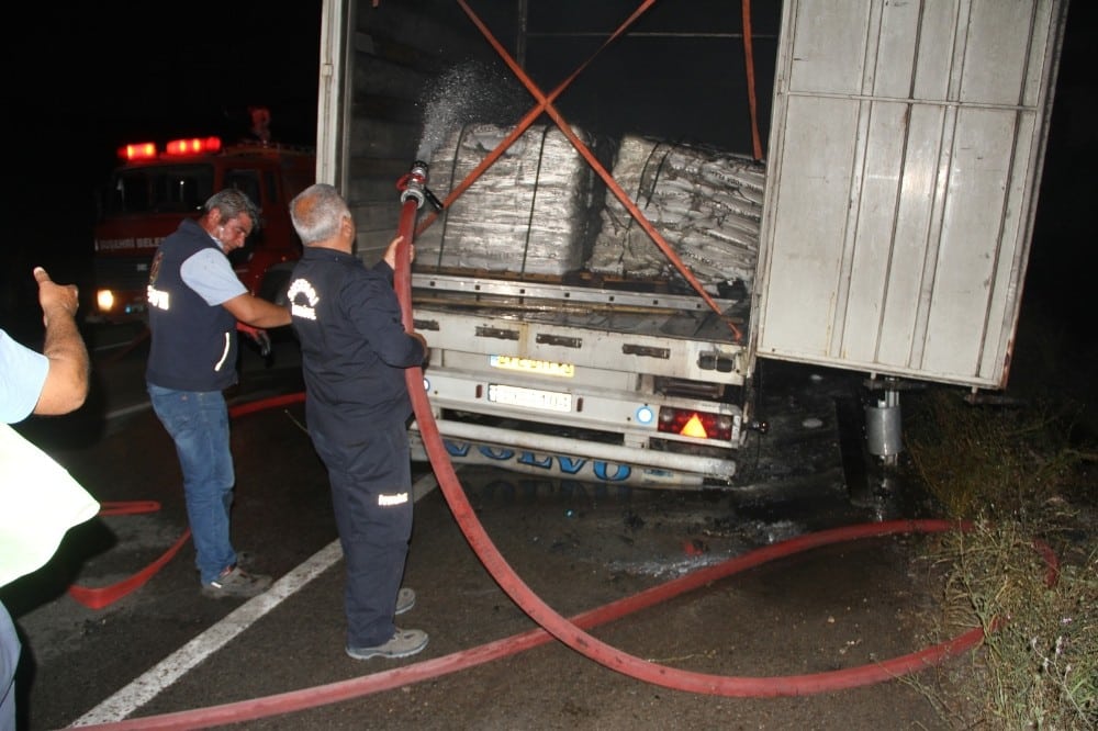 Suşehri ilçesinde dün gecenin geç saatlerinde seyir halinde ilerleyen bir tırda yangın çıktı. Tırda meydana gelen yangın herkesi korkuttu.