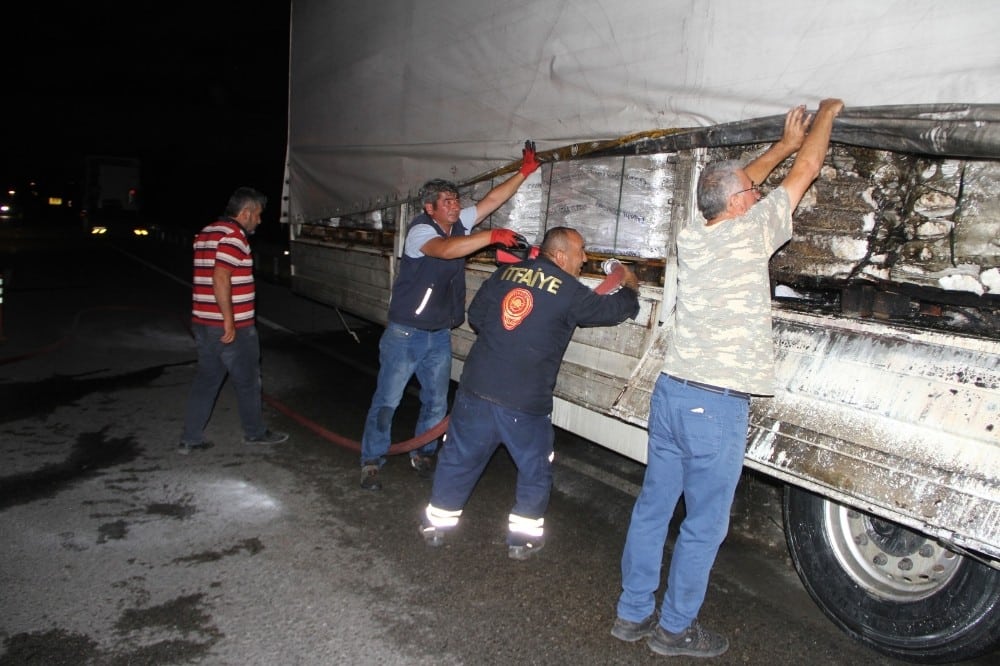 Suşehri ilçesinde seyir halindeki tırda yangın çıktı