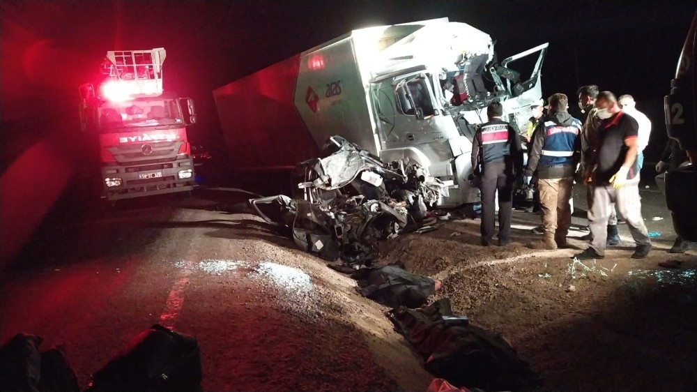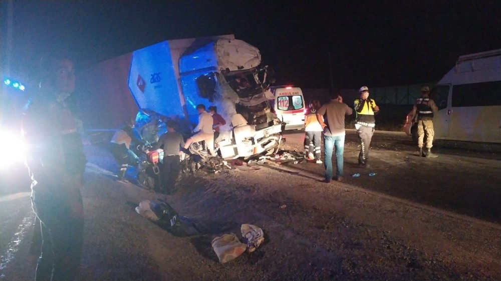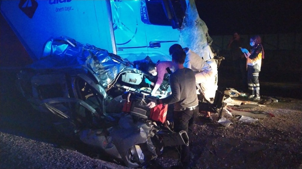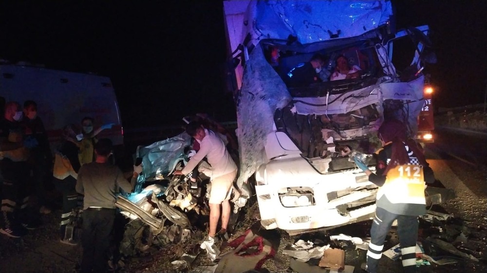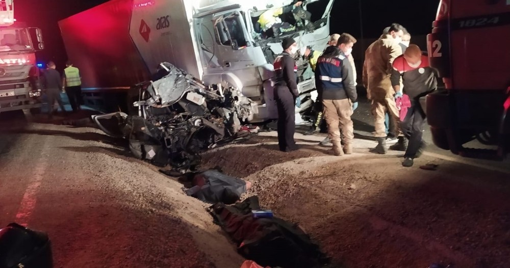 Feci kaza gecenin ilerleyen saatlerinde meydana geldi. Bir kargo firmasına ait kamyon ve damat adayının da bulunduğu otomobil sert bir şekilde çarpıştı. İki aracın da hurdaya döndüğü kazada otomobilde bulunan 35 yaşındaki sürücü Fırat Taşkın ile 32 yaşındaki damat adayı Yetkin Çimenli otomobilin içinde sıkışarak feci şekilde can verdi.