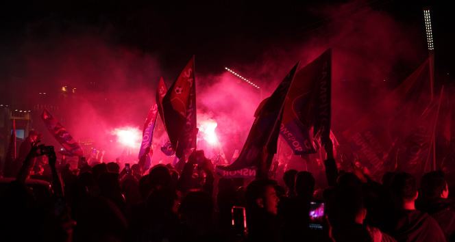 Trabzonsporlu taraftarların Taksim’de şampiyonluk coşkusu