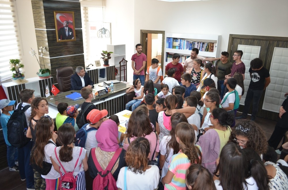 Türkiye Gençlik Vakfı Bünyan İlçe Temsilciğinin açmış olduğu yaz okuluna katılan çocuklar Bünyan Belediye Başkanı Özkan Altun’a teşekkür ziyaretinde bulundular.