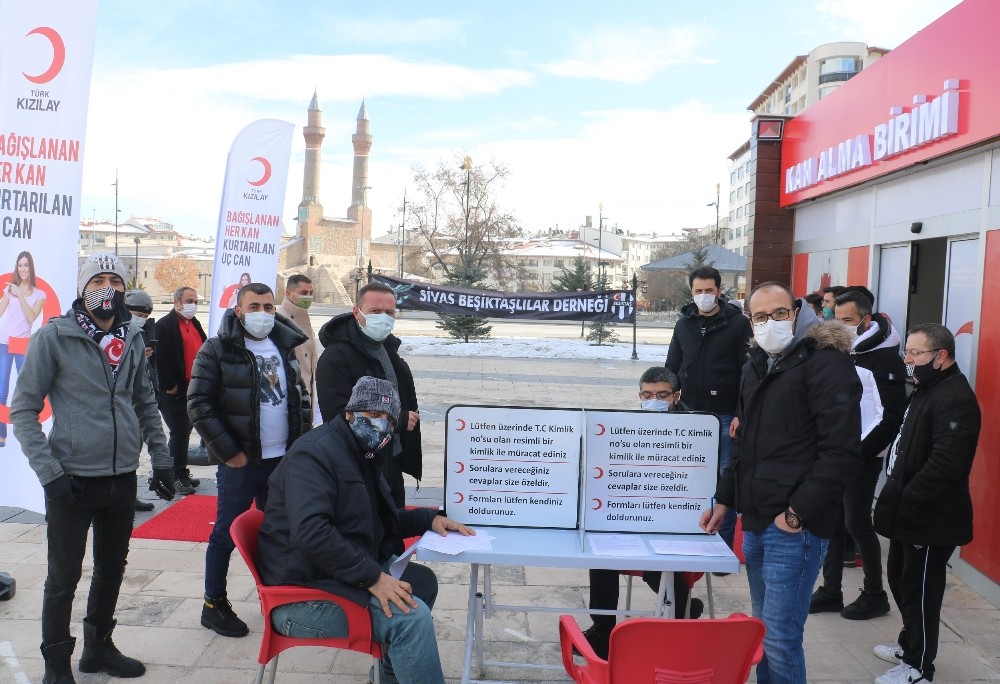 Sivas’ta bulunan Beşiktaşlılar Derneği üyeleri, özellikle salgın döneminde kan stokları azalan Kızılay’a destek amacıyla kan ve kök hücre bağışı yaptılar.