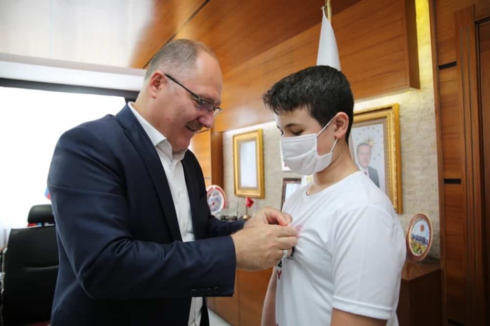 Geçtiğimiz gün sonuçları açıklanan LGS sınavında soruların tamamını doğru cevaplayarak 500 tam puan alan Hüseyin Berk Ergün ve Yiğit Emre Yıldırım isimli iki öğrenciyi Başkan Hilmi Bilgin makamında ağırladı.