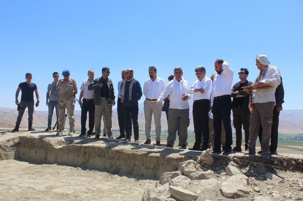 Tarihi kale ve nekropol alanında incelemelerde bulunan Van Valisi Mehmet Emin Bilmez, Van YYÜ Rektörü Prof. Dr. Hamdullah Şevli ve beraberindekiler, buradaki arkeologlardan bilgi aldı. Daha sonra açıklamalarda bulunan Vali Mehmet Emin Bilmez, kale alanında ciddi bir tarihi dokunun olduğunu belirtti. Kazı çalışmalarının bundan sonraki yıllar içerisinde de devam edeceğini ifade eden Vali Bilmez, “Bu tarihi hocalarımızla birlikte gün yüzüne çıkarıp hem ülke turizmine hem ilimize kazandıracağız hem de tarihi mekanların korunarak bundan sonraki nesle ulaşımını sağlayacağız. Bu kazılar yıllarca devam edilecek kazılardır. Buradaki kazı çalışmalarının uzatılması konusunda bakanlığımıza talepte bulunduk. Bakanlık da bu konuya olumlu bakıyor. İnşallah bu yöre halkı da bu tarihi dokuya sahip çıkar ve bunu sosyal ekonomik hayatlarının iyileşmesinde bir etken olarak görürler” dedi.