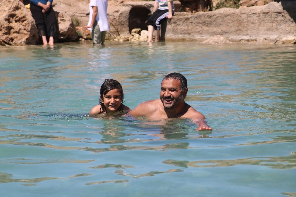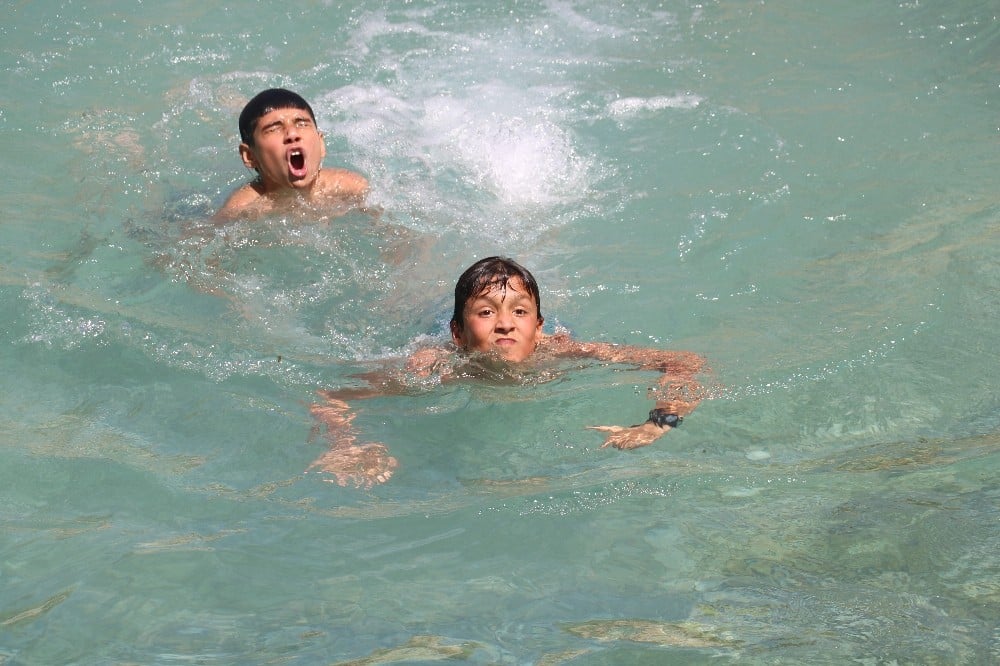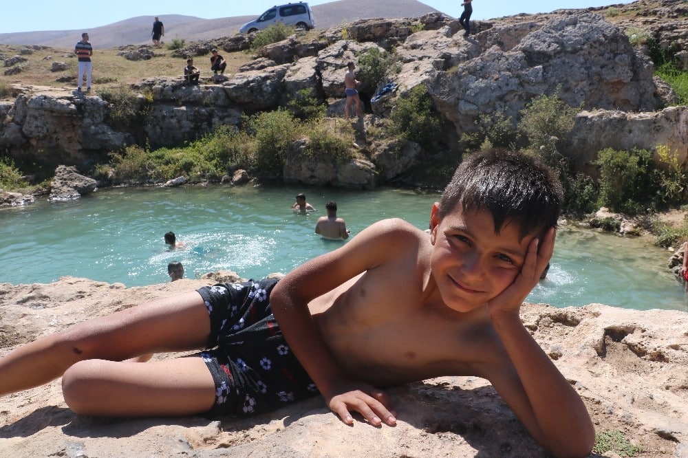 Uyuz hastalarının şifa bulmak için girdiği merkeze bağlı Gümüşdere köyündeki Uyuz gölü, sıcaktan bunalan Sivaslı vatandaşların akınına uğradı.