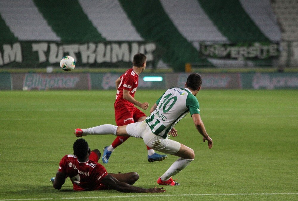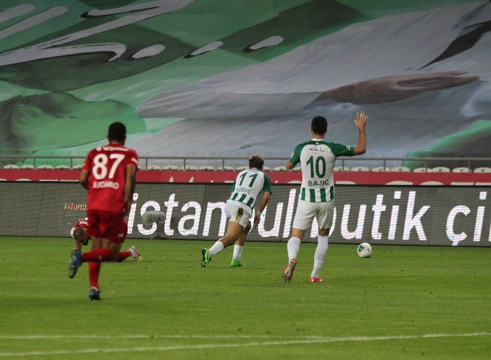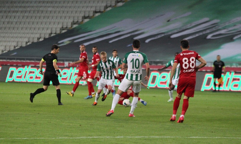 Seyircisiz oynanan maçta dakikalar 30’u gösterirken Sivasspor Arouna Kone’nin golüyle 1-0 üstünlüğü yakaladı. Bu golden 7 dakika sonra Konyaspor’da sahneye çıkan Skubic durumu 1-1’e getiren golü kaydetti. İlk yarının bitmesine 1 dakika kala ise bu kez Deni Milosevic Sivasspor ağlarını salladı ve ilk yarı 2-1 ev sahibi takımın üstünlüğüyle geçildi.