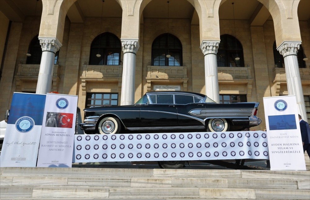 Ankara Gazi Üniversitesinde bulunan Merhum Başvekil Adnan Menderes’in 1958 model, 8 silindirli, 300 beygir gücünde, 3 bin motor, otomatik cam ve ısıtmalı koltuklu tarihin izlerini taşıyan makam arabası, Adnan Menderes Demokrasi Müzesi’ nde sergilenmek üzere Aydın Valiliği’ne teslim edildi.