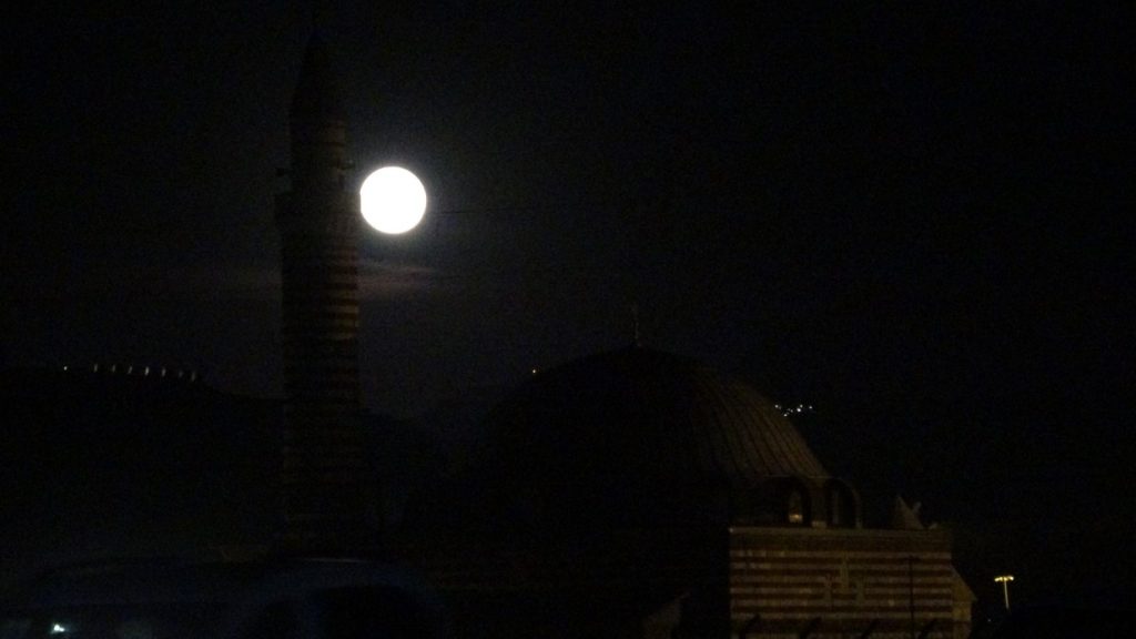 Van’da Gökyüzünde Büyüleyici Şişkin Ay Manzarası