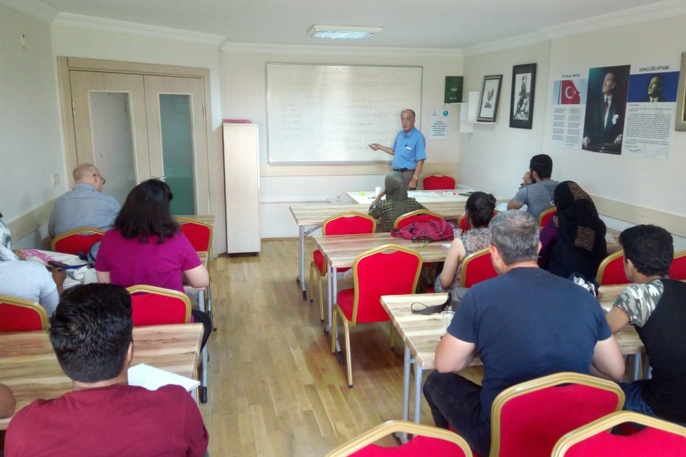 Çankaya Halk Eğitim Merkezi eğitmenlerinden emekli Türk Dili ve Edebiyatı öğretmeni tarafından verilen derslere büyük bir özveriyle katılan kursiyerler, 4 aylık periyotlarda süren eğitimlerde Türkçe’ye hakim oluyorlar.