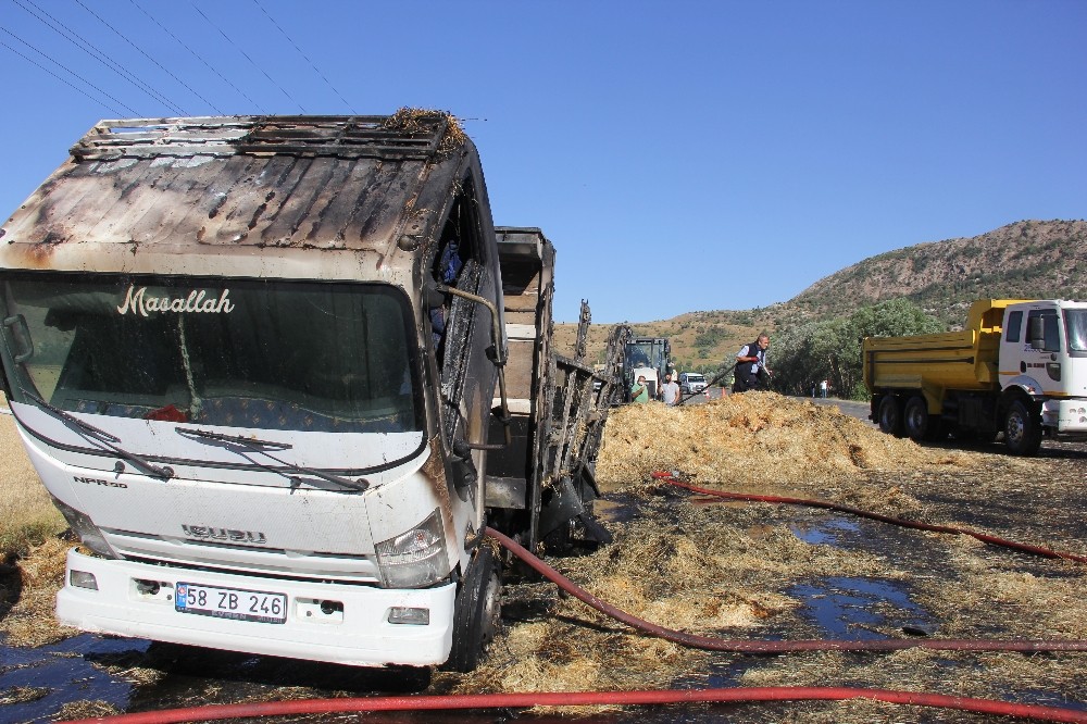 Sivas ile Erzincan arasındaki karayolunun Zara ilçe sınırları içerisinde dün akşam saman yüklü bir kamyonda yangın çıktı.