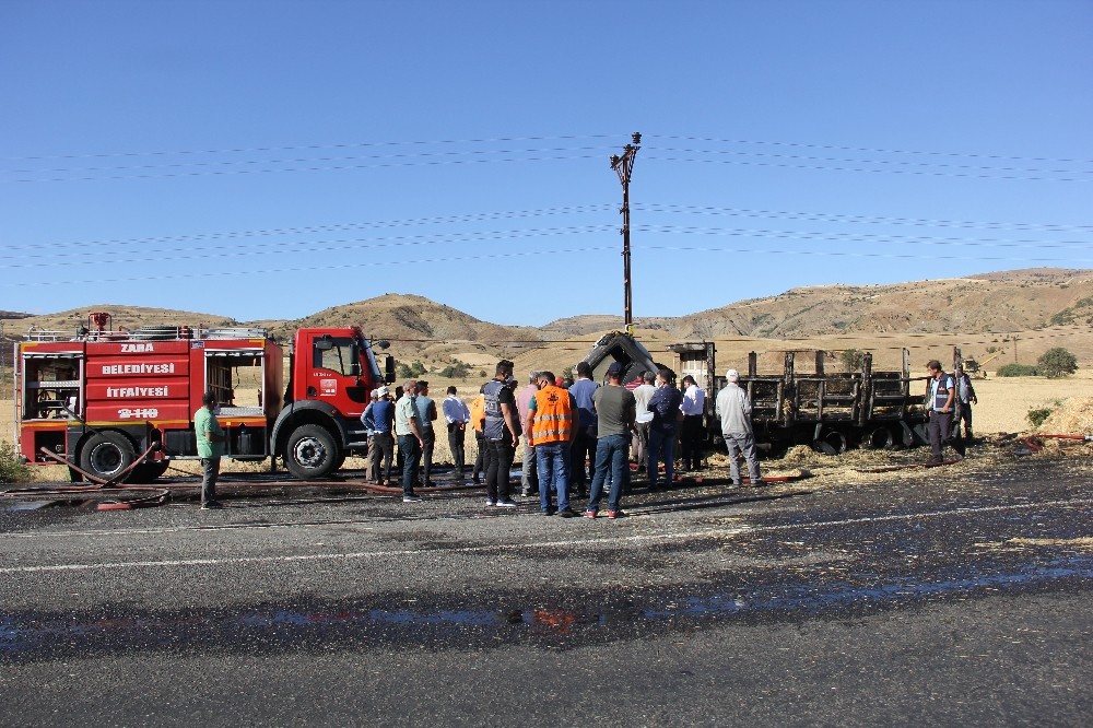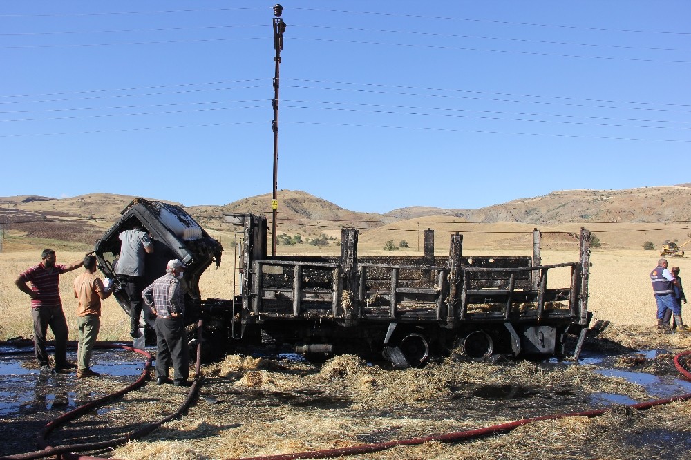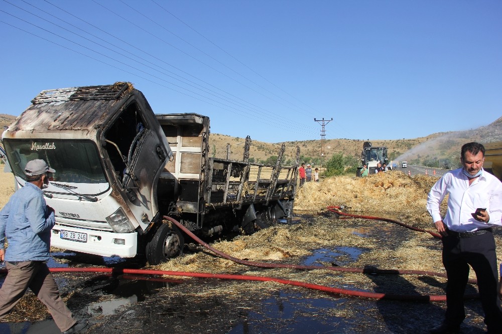 Ağılkapısı’na yakın bir bölgede gerçekleşen yangının henüz belirlenemeyen bir sebepten ötürü seyir halindeki kamyonda yangın çıktı. Alev alev yanan samanların ardından kamyon da büyük bir hasar aldı. Bölgeye gelen itfaiye ekipleri yangını söndürse de kamyonun kullanılamaz hale geldiği görüldü.