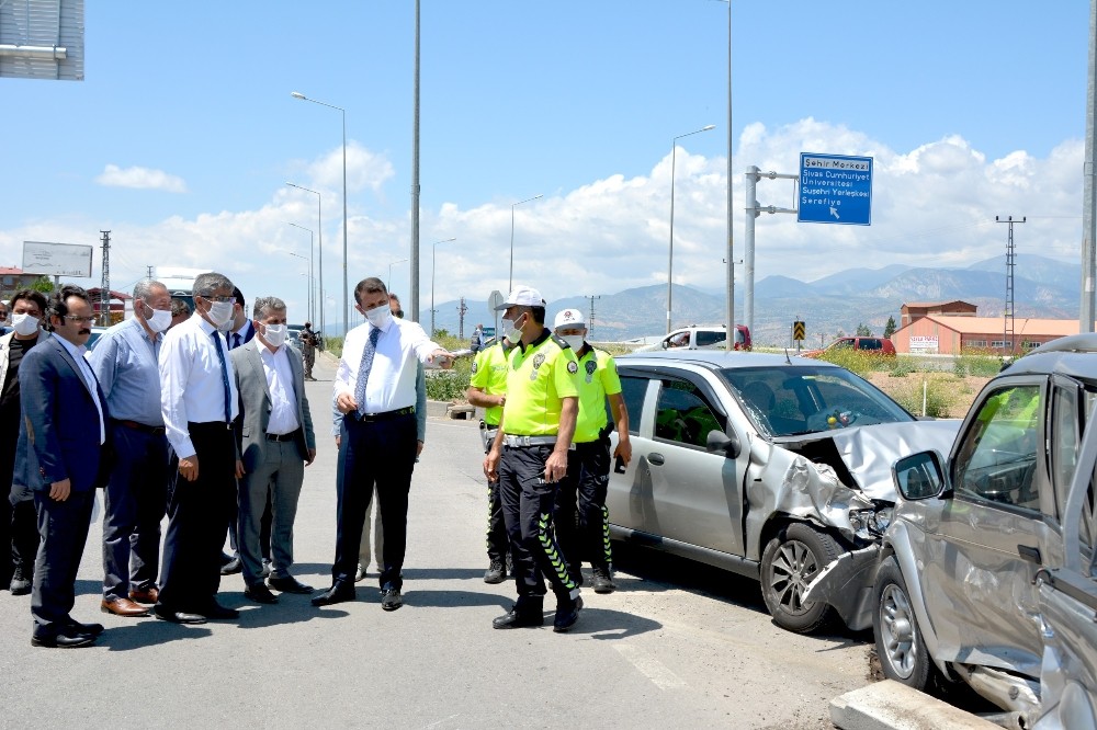 Sivas Valisi Salih Ayhan da kazanın yaşandığı bölgeye gelerek yetkililere hem yaralı ailelerle ilgilenilmesi, hem de ailenin tedavi sonrası yolculuğuna devam edebilmesi için araç temin edilmesi talimatını verdi. Bölgeyi kontrol altına alan polis ekipleri, yaşanan kazaya ilişkin inceleme başlattı.