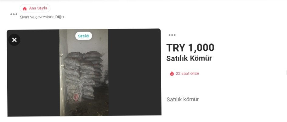 Sivas’ta ihtiyaç sahibi ailelere dağıtılan kömürleri internet üzerinden satan kişiler kıskıvrak yakalandı ve 1 tonluk kömüre el konuldu.