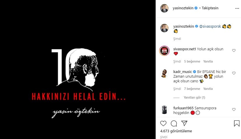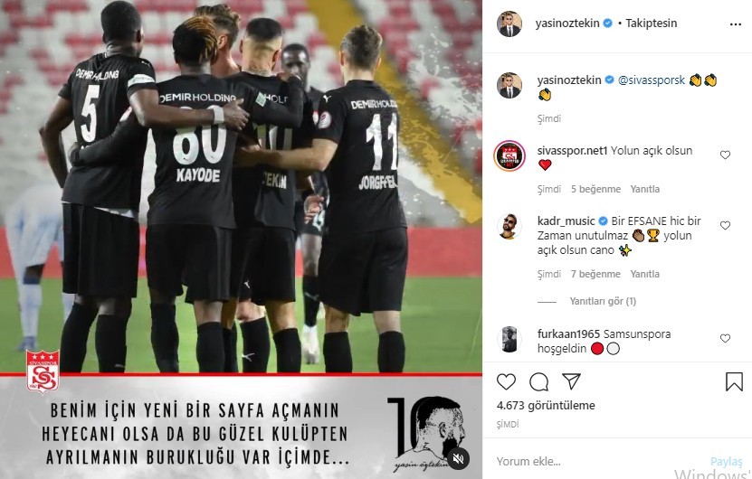Sosyal medya hesabından yaptığı paylaşımla DG Sivaspor’dan ayrıldığını belirten Yasin Öztekin tüm camiaya teşekkürlerini iletti.