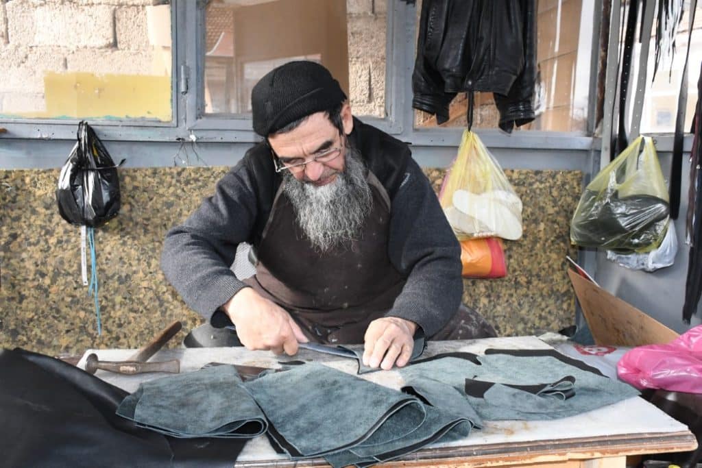 Deri işlemeciliği konusunda deneyimli bir diğer usta Mehdi Ömer ise, ürünlerin Türkiye’nin dört bir yanına gönderildiğini söylüyor. Ömer, deri çoraplar, montlar ve diğer ürünleri el emeğiyle hazırladığını, Mehmetçikler ve komutanlar için özel olarak çizme ürettiğini belirtiyor.