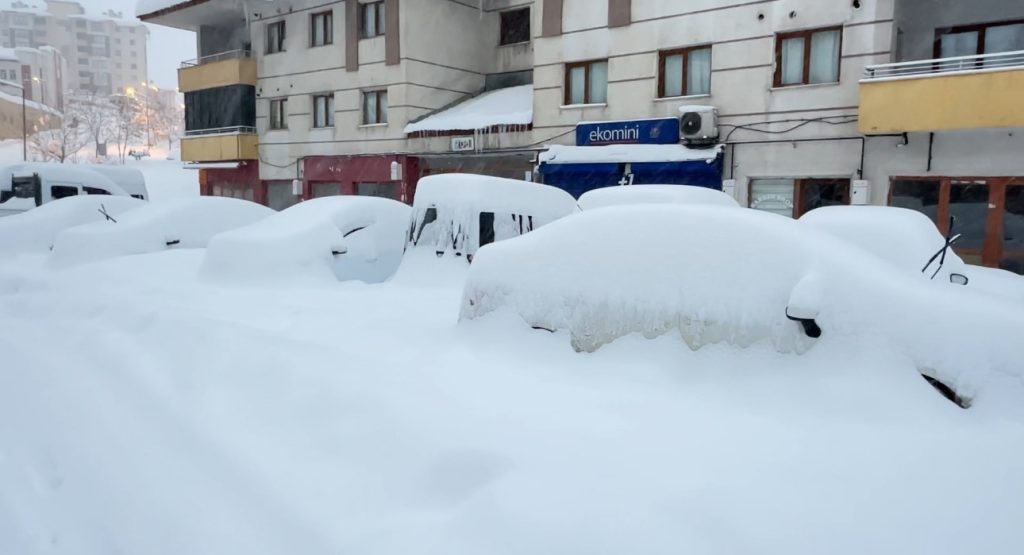 Meteoroloji Genel Müdürlüğü’nün uyarıları sonrası şiddetini artıran kar yağışları ve tipi, ilçede yaşamı durdurma noktasına getirdi. Aşırı soğuklarla birleşen yoğun kar yağışı sonucunda ilçe merkezi beyaz bir örtüyle kaplandı; park halindeki araçlar ve bazı evler kar altında neredeyse görünmez hale geldi.