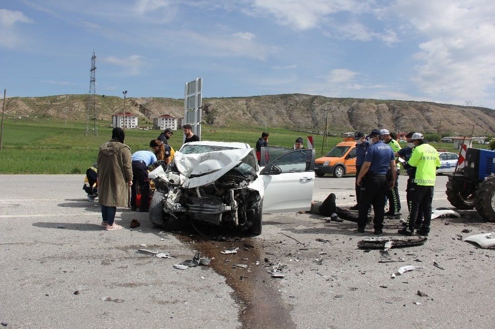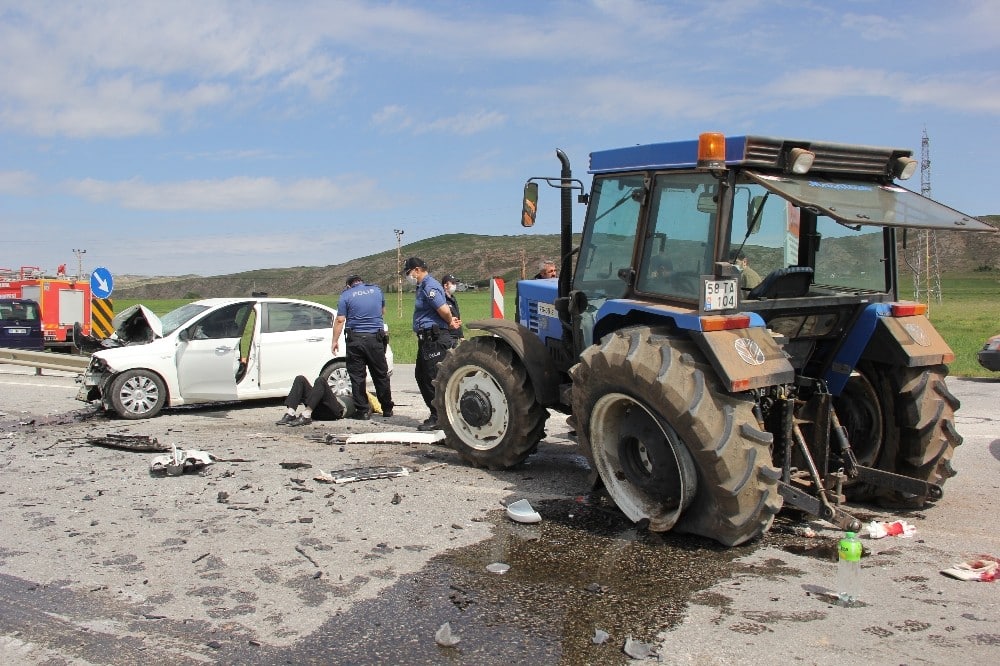 Sivas-Erzincan yolunun Zara mevkilerinde bir otomobil ile traktörün çarpıştığı feci trafik kazasında 5 kişi yaralandı.